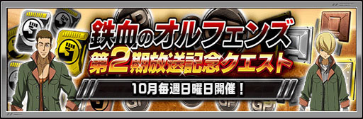 ▼10月の毎週日曜に開催! 「機動戦士ガンダム 鉄血のオルフェンズ」第2期放送記念クエスト